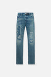 The Olivier Skinny Jean in Distressed Medium Stone is made from premium denim. Designed with a skinny fit, reinforced stitching on the inner thighs, and distressed detailing down the front legs. These jeans feature the RTA logo embroidered on the upper thigh, iconic RTA cross on the back pocket, and signature leather patch on the back waistband.